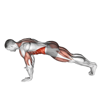 Directly targets obliques with isometric hold. As fat decreases, definition appears.